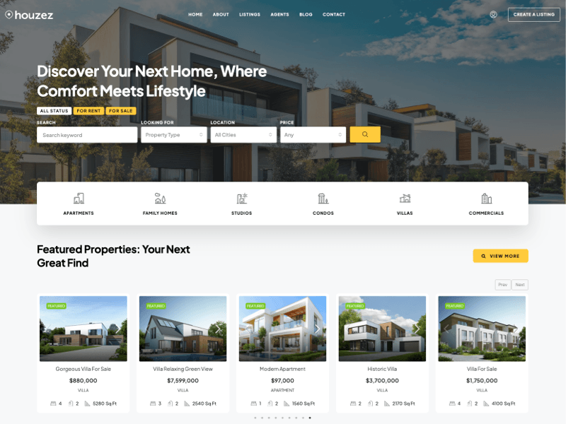 Essential widgets for building the core sections of your real estate website.
