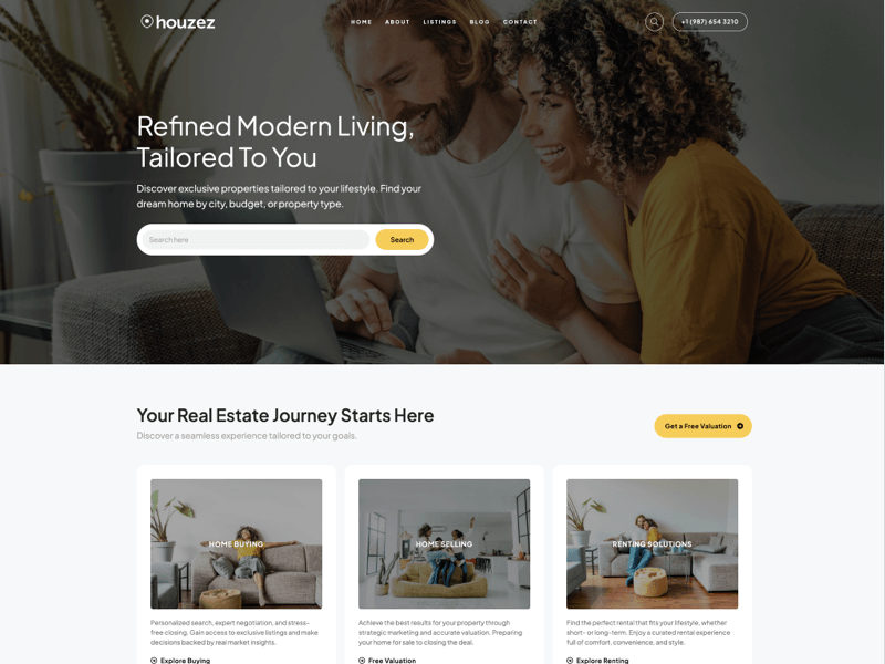 This menu tab features multiple search bar styles and placements built to help visitors easily find properties with precision and style.