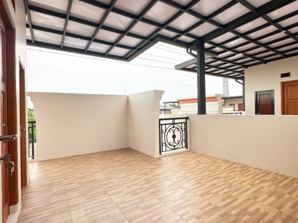 Ruang Lengkap & Fungsional: dapur, ruang tamu, ruang keluarga, balkon, rooftop, service area, taman depan & belakang